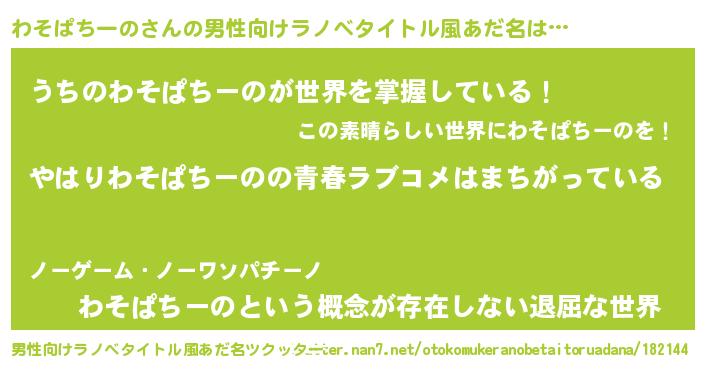 | 女子向けラノベタイトル風あだ名 | 『わそぱちーのの雑貨屋さん』 |