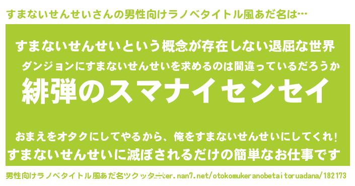 | 胡散臭い通販商品みたいなあだ名 | 『絶対に幸福をもたらす招き猫…その名も「すまないせんせい」』 |