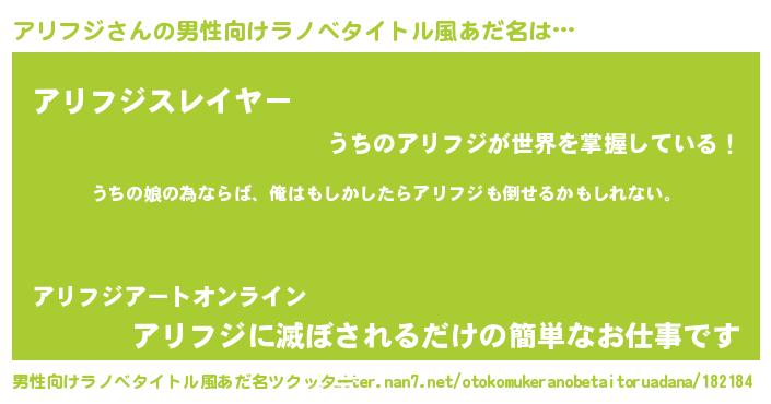 | ファンタジー風あだ名 | 『エターナルアリフジー』『アリフェル』 |