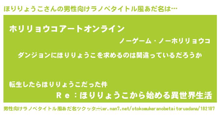 | 女子向けラノベタイトル風あだ名 | 『ほりりょうこは平凡を望む』 |
