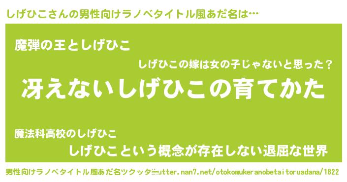 | 意味不明あだ名 | 『住所不定無職しげひこ(62歳)』 |