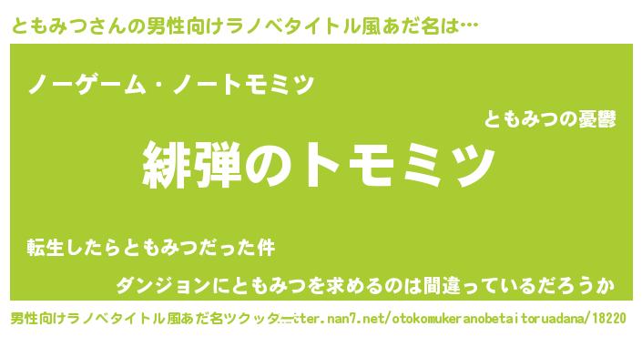 | 胡散臭い通販商品みたいなあだ名 | 『100人中100人が認めたマグネット磁石…その名も「ともみつ」』 |