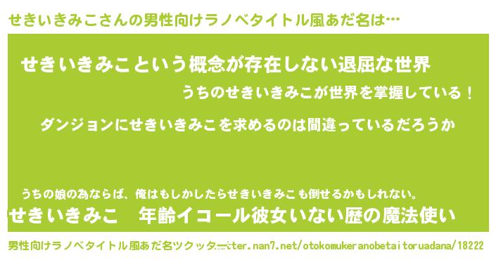 | 女子向けラノベタイトル風あだ名 | 『せきいきみこの卵を拾いまして』 |
