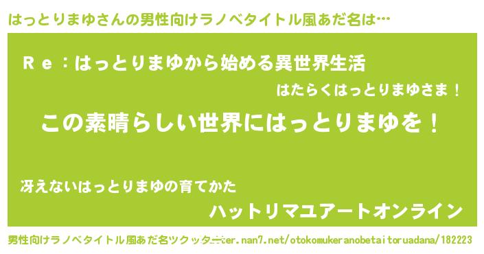 | 意味不明あだ名 | 『住所不定無職はっとりまゆ(89歳)』 |