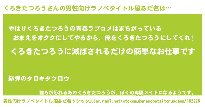 | 胡散臭い通販商品みたいなあだ名 | 『運命の人と巡り会える高級そうな壺…その名も「くろきたつろう」』 |