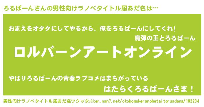 | ヘコむあだ名 | 『ろるにゅー』『牛乳』『ろる太郎』 |