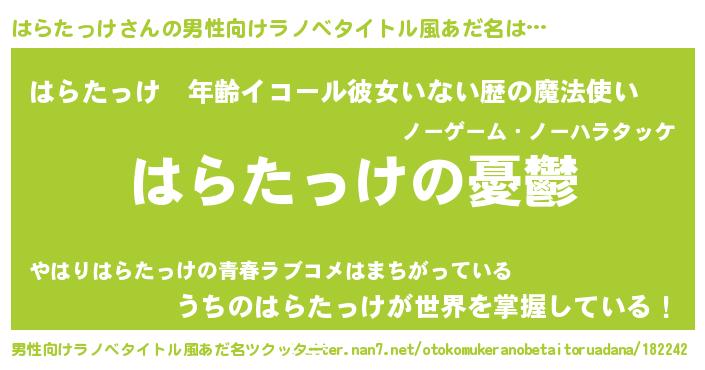 | 胡散臭い通販商品みたいなあだ名 | 『必ず成功する霊験あらたかなお札…その名も「はらたっけ」』 |