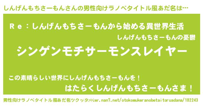 | 料理風あだ名 | 『しんげんもちさーもんごはん』 |