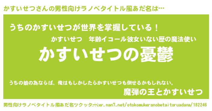 | 胡散臭い通販商品みたいなあだ名 | 『必ず成功する霊験あらたかなお札…その名も「かすいせつ」』 |