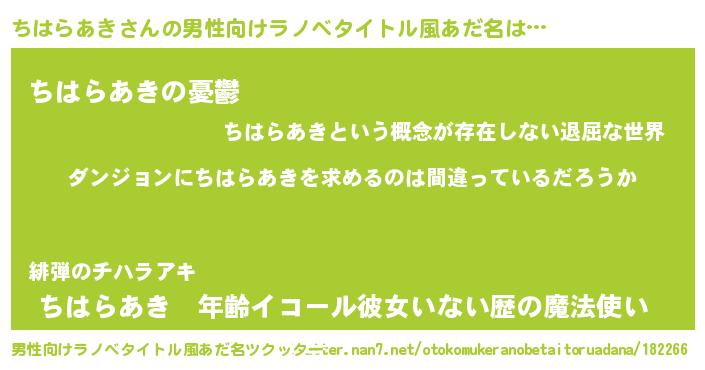 | 女子向けラノベタイトル風あだ名 | 『ちはらあきの卵を拾いまして』 |