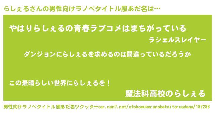 | 意味不明あだ名 | 『とにかく怪しいらしぇる』 |
