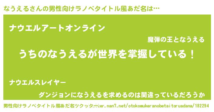 | ヒーロー風カッコイイあだ名 | 『スーパーナウエル』『幻影騎士ナウ』 |