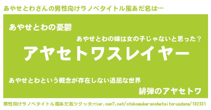 | 胡散臭い通販商品みたいなあだ名 | 『必ず成功する水晶球…その名も「あやせとわ」』 |