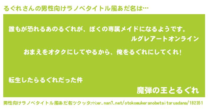 | 女子向けラノベタイトル風あだ名 | 『るぐれ恋絵巻』『るぐれの契約王妃』 |