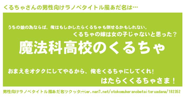| 女子向けラノベタイトル風あだ名 | 『くるちゃなんてお断りですっ。』 |