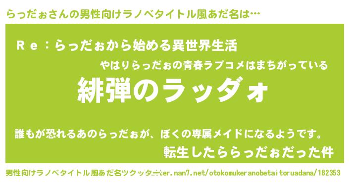 | 胡散臭い通販商品みたいなあだ名 | 『ガンによく効く高麗人参…その名も「らっだぉ」』 |