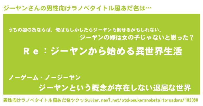 | 意味不明あだ名 | 『自称ジーヤン』『ジーヤンフォーエバー』 |