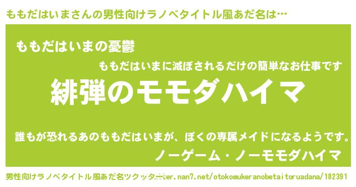| 胡散臭い通販商品みたいなあだ名 | 『必ず成功するブレスレット…その名も「ももだはいま」』 |