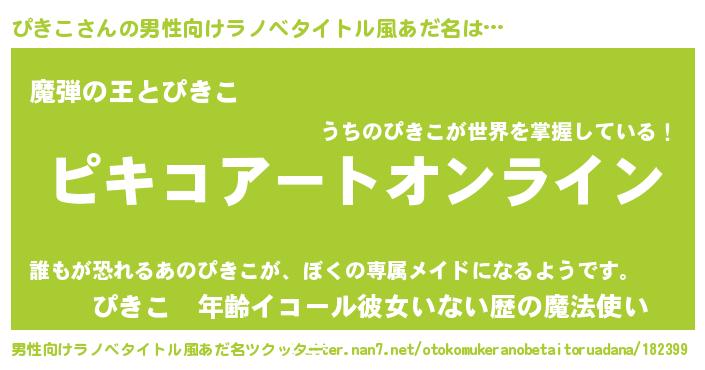 | 女子向けラノベタイトル風あだ名 | 『ぴきこ姫と円卓の騎士』 |