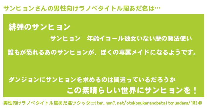 | 胡散臭い通販商品みたいなあだ名 | 『前代未聞の健康食品…その名も「サンヒョン」』 |