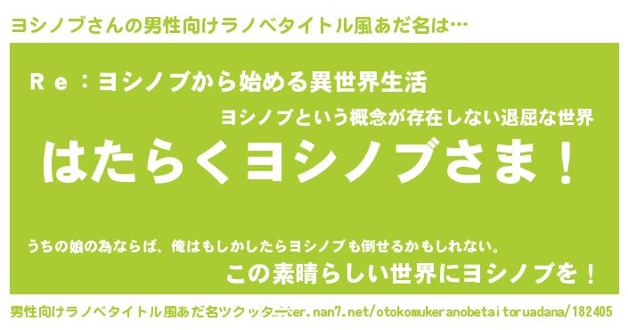 | 肩書あだ名 | 『ヨシノブディレクター』『ヨシノブ閣下』 |