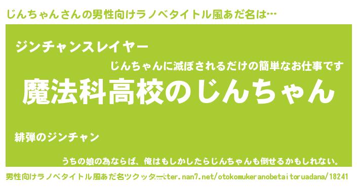 | 意味不明あだ名 | 『自称じんちゃん』『ペロリンじんちゃん』 |
