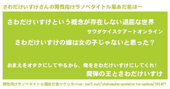 | 女子向けラノベタイトル風あだ名 | 『さわだけいすけの卵を拾いまして』 |
