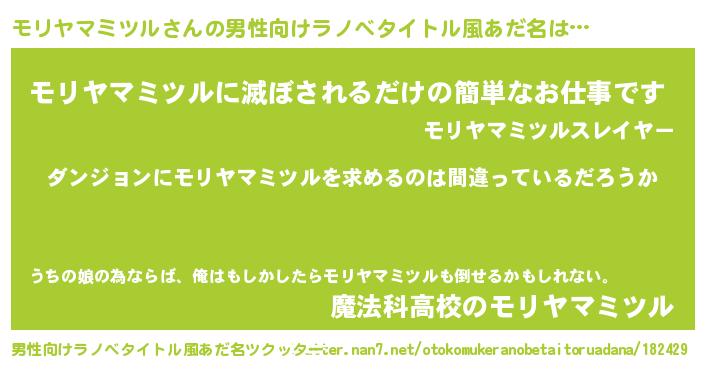 | ヒーロー風カッコイイあだ名 | 『魔戒騎士モリ』『ネオモリヤマミツル』 |