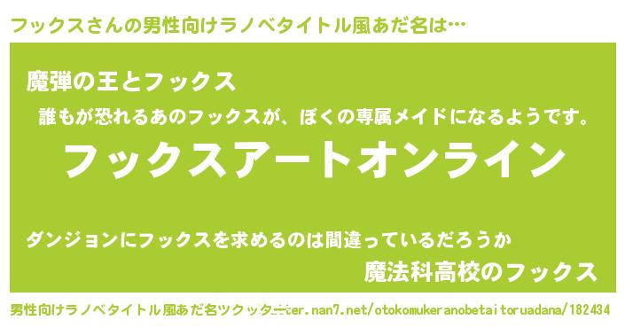 | 女子向けラノベタイトル風あだ名 | 『フックス姫と円卓の騎士』 |