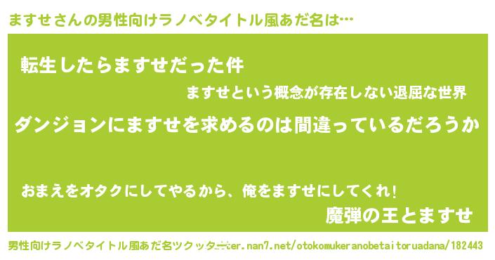 | 女子向けラノベタイトル風あだ名 | 『ますせの卵を拾いまして』 |
