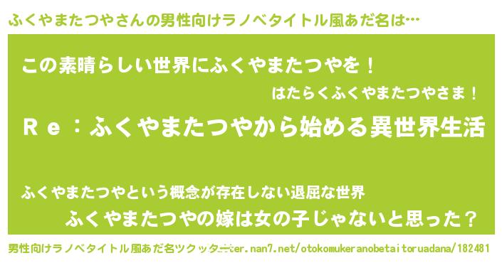 | 意味不明あだ名 | 『自称ふくやまたつや』 |