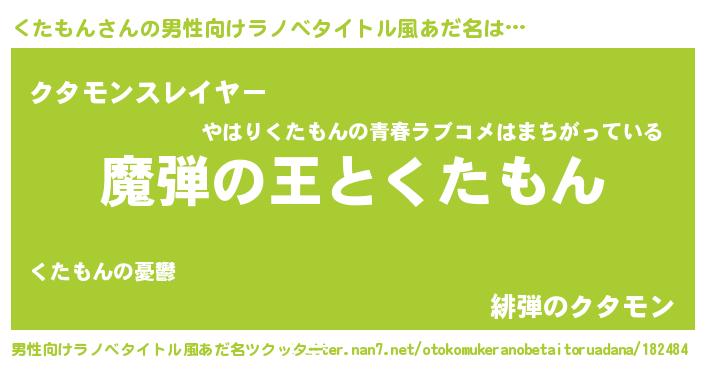 | ヒーロー風カッコイイあだ名 | 『仮面クタダー』『ウルトラくたもんマン』 |