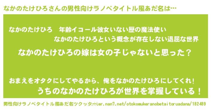 | 女子向けラノベタイトル風あだ名 | 『なかのたけひろ様がみてる』 |