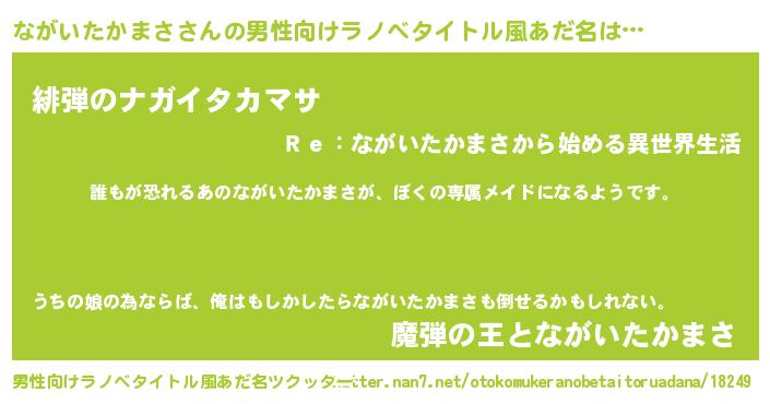 | 女子向けラノベタイトル風あだ名 | 『ながいたかまさの契約王妃』 |