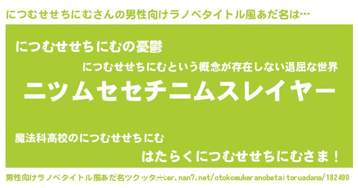 | ヘコむあだ名 | 『につにー』『につむせせちにむ(爆)』 |
