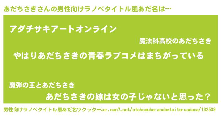 | 女子向けラノベタイトル風あだ名 | 『あだちさきの雑貨屋さん』 |