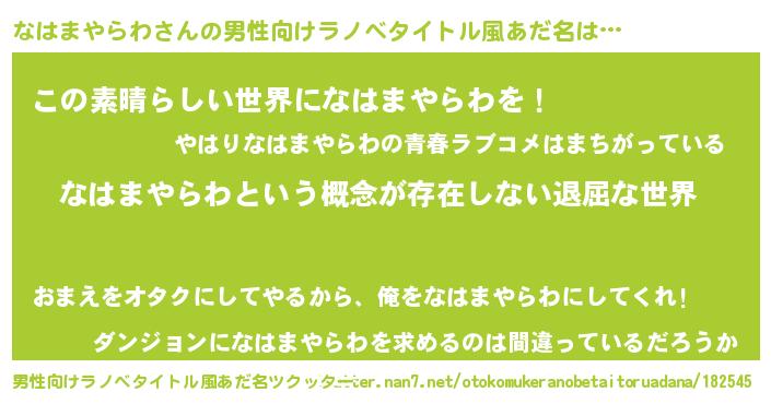 | 女子向けラノベタイトル風あだ名 | 『なはまやらわの契約王妃』 |