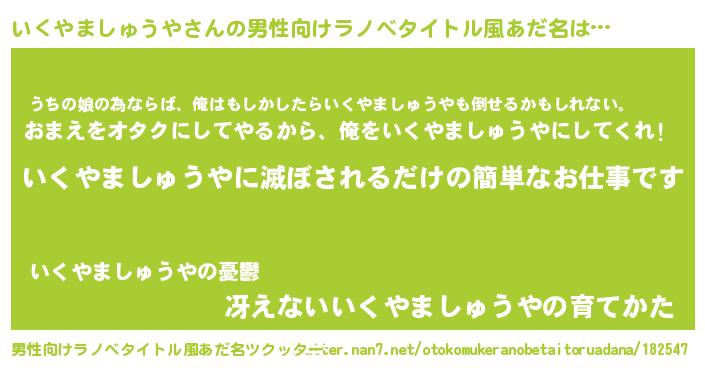 | 胡散臭い通販商品みたいなあだ名 | 『世界が平和になる高級そうな絵画…その名も「いくやましゅうや」』 |
