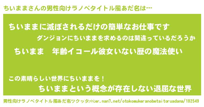 | ヘコむあだ名 | 『ちいまま(小並感)』『ちいぷりん』 |