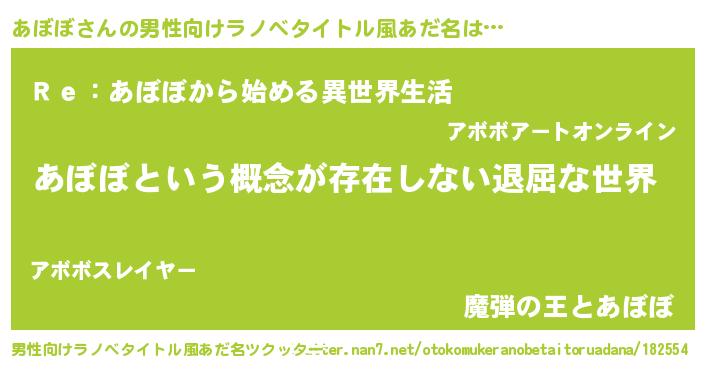 | 胡散臭い通販商品みたいなあだ名 | 『絶対に幸福をもたらす健康食品…その名も「あぼぼ」』 |
