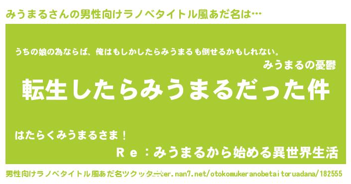 | 意味不明あだ名 | 『なめこ科みうまる属』『自称みうまる』 |