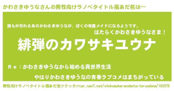 | ヒーロー風カッコイイあだ名 | 『ネオカワサキユウナ』『銀牙騎士カワ』 |