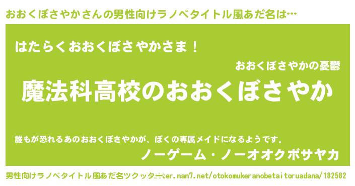 | 意味不明あだ名 | 『自称おおくぼさやか』 |