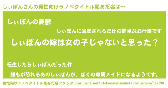 | 女子向けラノベタイトル風あだ名 | 『しぃぽん様がみてる』 |