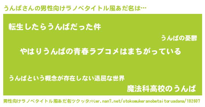 | 女子向けラノベタイトル風あだ名 | 『うんばの雑貨屋さん』 |