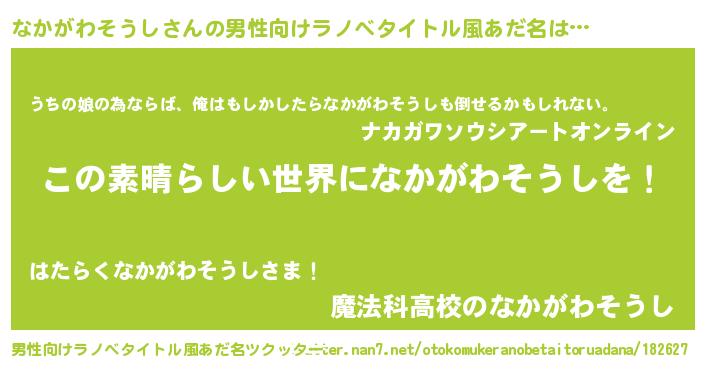 | 胡散臭い通販商品みたいなあだ名 | 『あなたにだけ特別に提供する100年もののヴィンテージワイン…その名も「なかがわそうし」』 |