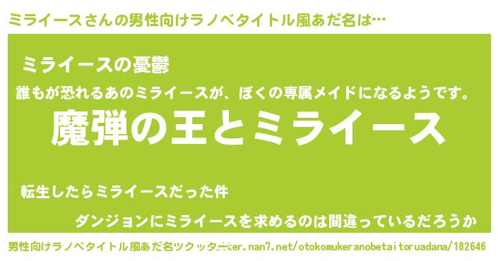| ファンタジー風あだ名 | 『ヴァルミラーナ』『ミラフェル』 |
