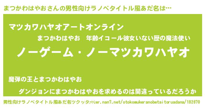 | 意味不明あだ名 | 『眠気覚ましガムまつかわはやお味』 |