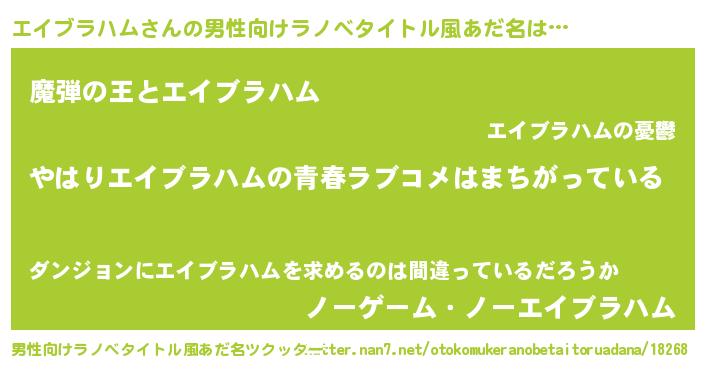| 女子向けラノベタイトル風あだ名 | 『エイブラハム伯爵の花嫁』 |