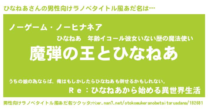 | 意味不明あだ名 | 『住所不定無職ひなねあ(3歳)』 |
